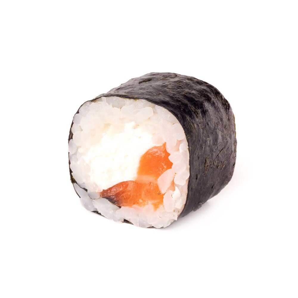 8 шт. Состав: Нори, рис, сыр творожный, лосось